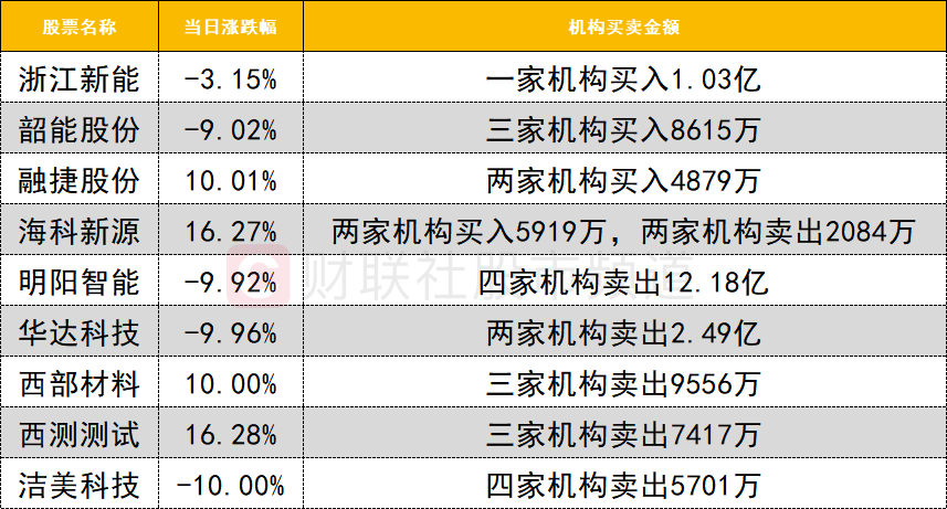 今日龙虎榜机构活跃度一般,西部材料遭三家机构卖出9556万,另一只商业航天概念股西测测试遭三家机构卖出7417万。明阳智能遭四家机构大幅卖出12.18亿。