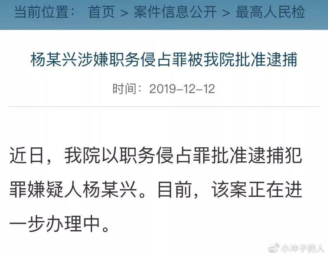 12月12日,广东省深圳市南山区人民检察院近日发布重要案件信息公告称,该院已以「 职务侵占罪 」批准逮捕犯罪嫌疑人杨某兴。