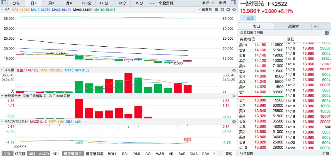 近期,一脉阳光(02522)引发资金抢筹。截至发稿,近12个交易日日均成交额接近2.8亿港元,入列港股10%活跃股的行列,可见其股价已经到了底部。