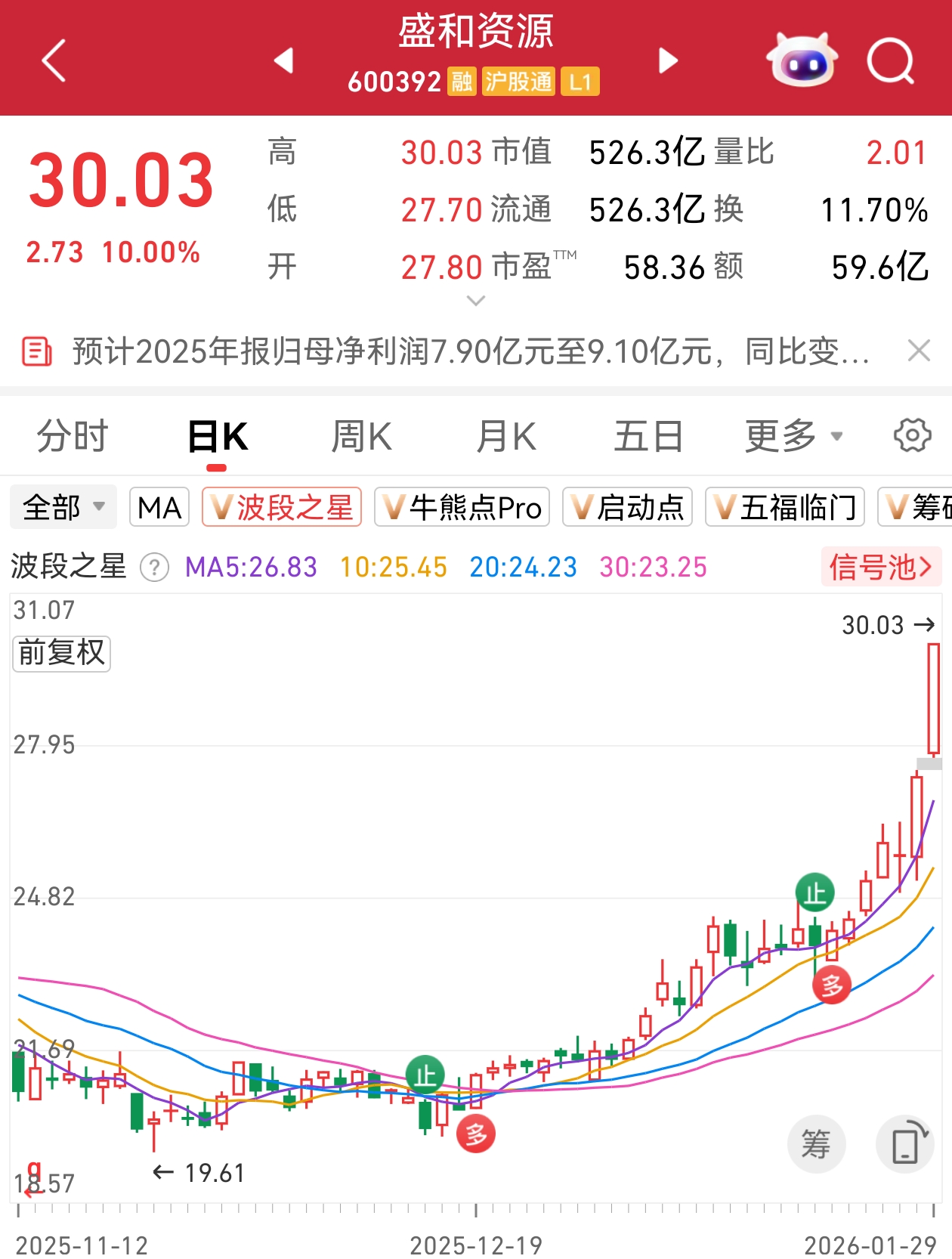 注:“波段之星”显示,盛和资源2026年1月21日出现“多”信号!