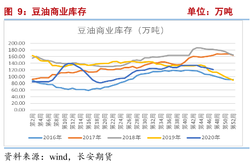 相关监测数据显示,截至11月16日,全国主要油厂豆油库存129万吨,周环比减少4万吨,月环比减少11万吨,和近三年同期水平相比更是减少了35万吨。