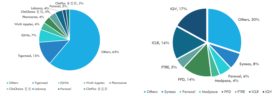 图:2023年中国CRO市场格局 图:2023年全球CRO市场格局 |