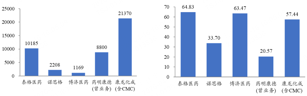 图:2024年国内可比CRO人员规模(人) 图:2024年国内可比CRO人均创收(万元/人) |