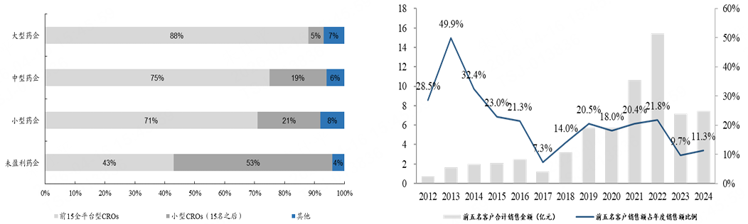 图:2024年大型药企对CRO选择偏好 图:前五名客户销售情况 |