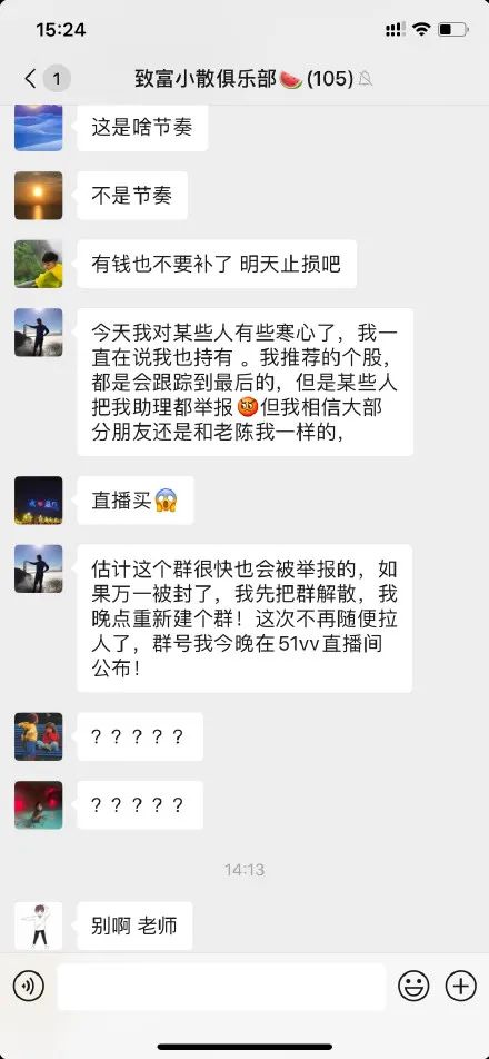 而被割了韭菜之后,微信群也解散了,直播也看不到。