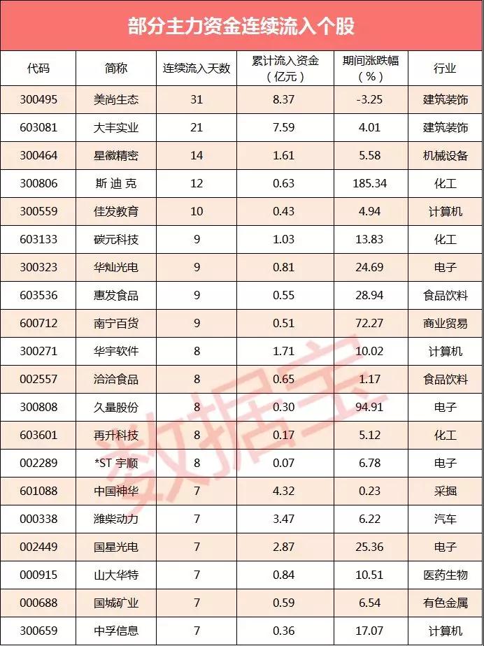 主力资金连续流入个股