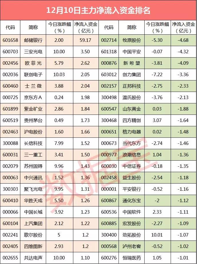 12月10日主力资金路线图