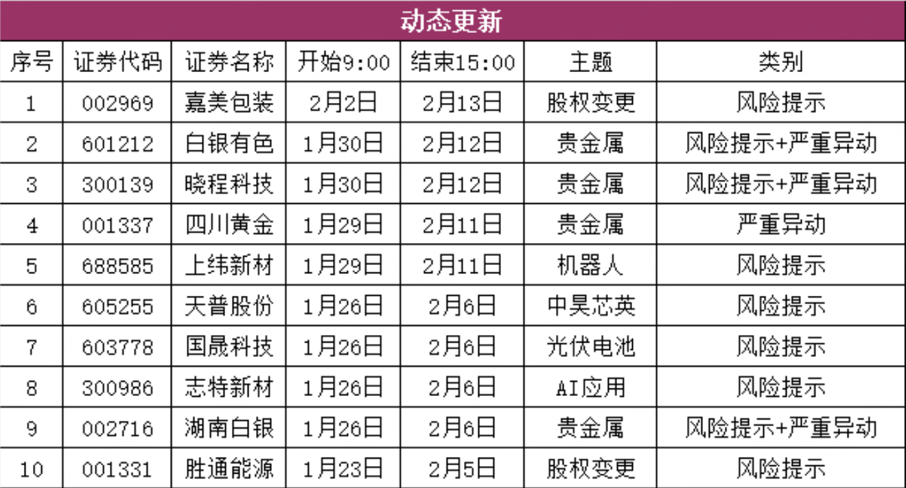 二、异动监管(动态更新)
