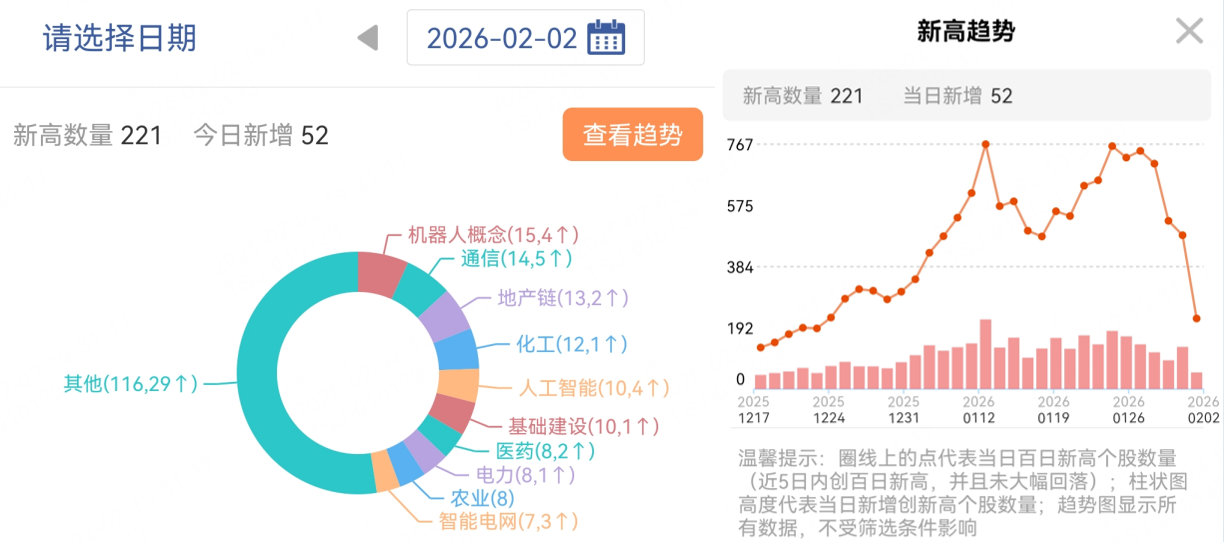 从百日新高去看,板块新高数量前4:机器人>通信>地产链>化工
