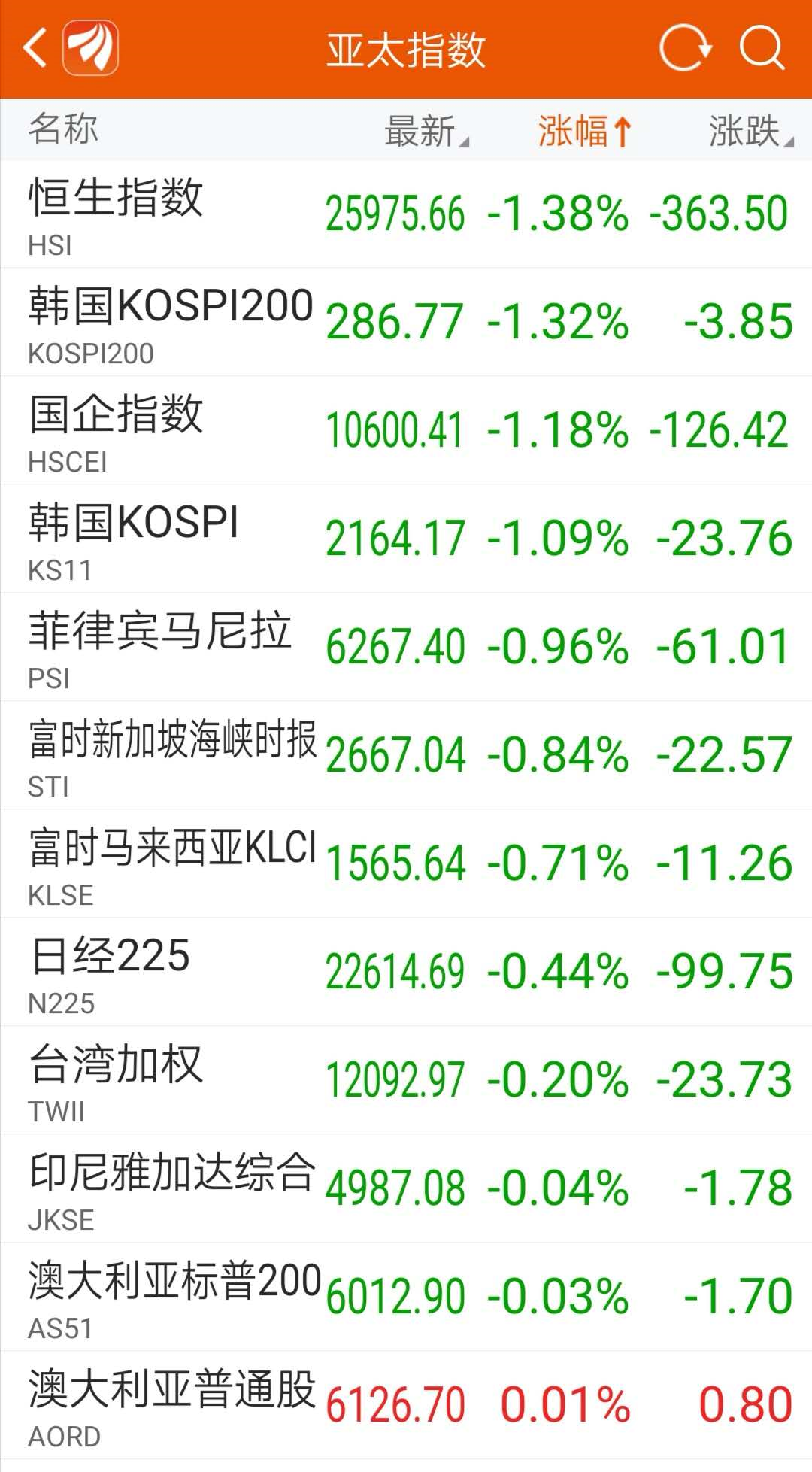 尤其需要注意的是,今天亚太市场普遍下挫,港股恒生指数尾盘继续杀跌,至收盘,跌幅为1.38%。