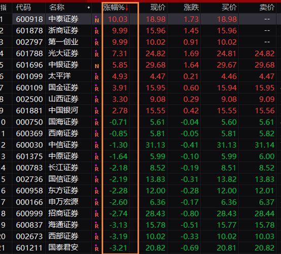 具体板块方面,前期一路连续涨停的券商股出现调整,板块内多数个股下跌,南京证券、红塔证券等跌幅超过5%。不过仍有券商股涨停,板块内部出现较大分化。