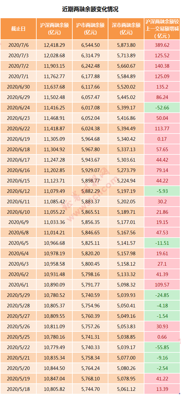 数据显示,自6月29日至7月6日,两融余额已实现6连增,6个交易日两融余额合计激增超过1000亿元,其中仅7月6日一天就激增389.62亿元,两融余额单日增加额创出2010年A股市场正式开通融资融券业务以来新高。