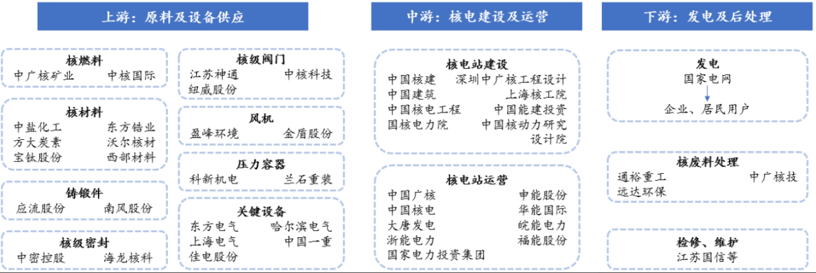 我国核电产业链及相关企业