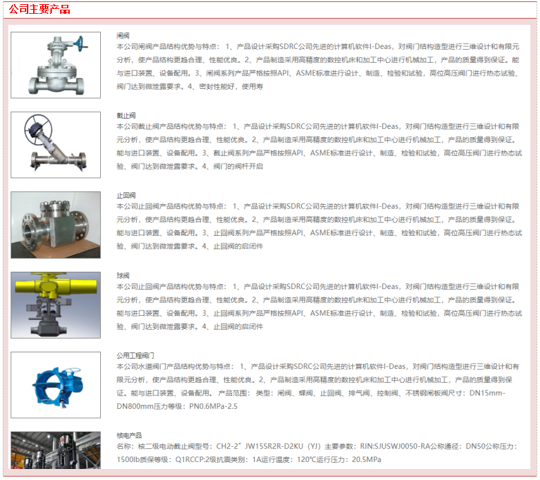 主要业务为工业用阀门的研发、生产、销售及服务,下游行业涵盖核工程、石油石化、公用工程、火电等市场领域。