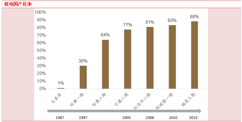 根据华经产业研究院及《核电阀门国产化研究》数据,我国早一批核电站阀门国产化率极低,仅秦山一期、二期在核级阀门中使用了1%的国产阀门。经过多年技术积累,于2009年开工的红沿河3、4号机组整体阀门国产化率达60%,三门、海阳核电站规划的整体阀门国产化率分别为70%、80%,国产替代趋势明显。