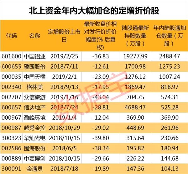 27股大幅跌破定增价 北上资金“疯狂”抢筹