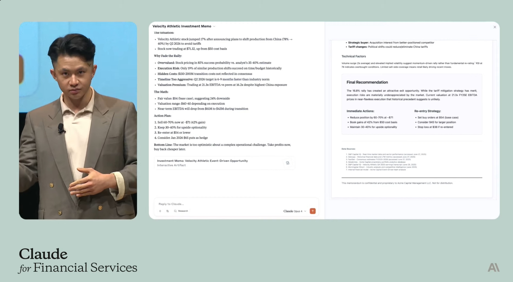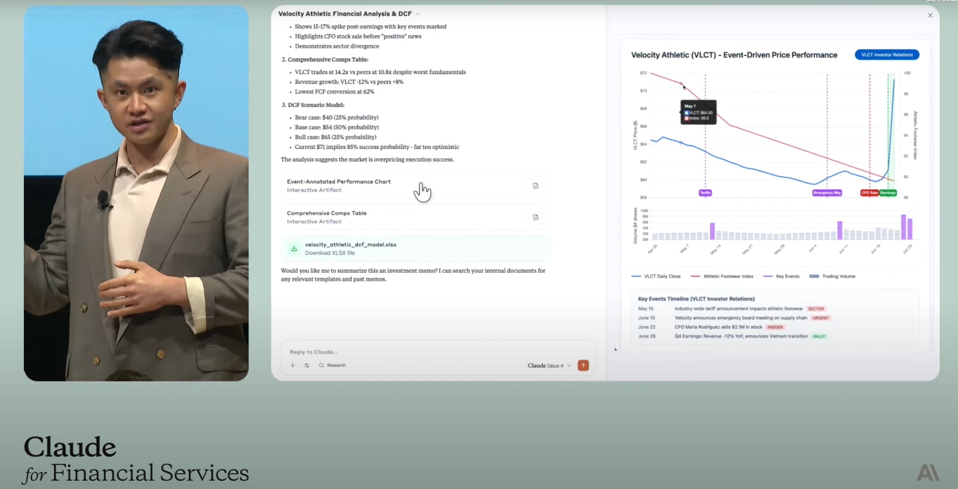 周二的发布会上,Anthropic金融服务产品主管Nicholas Lin也向外界展示了金融赛道的AI已经发展到何种程度。