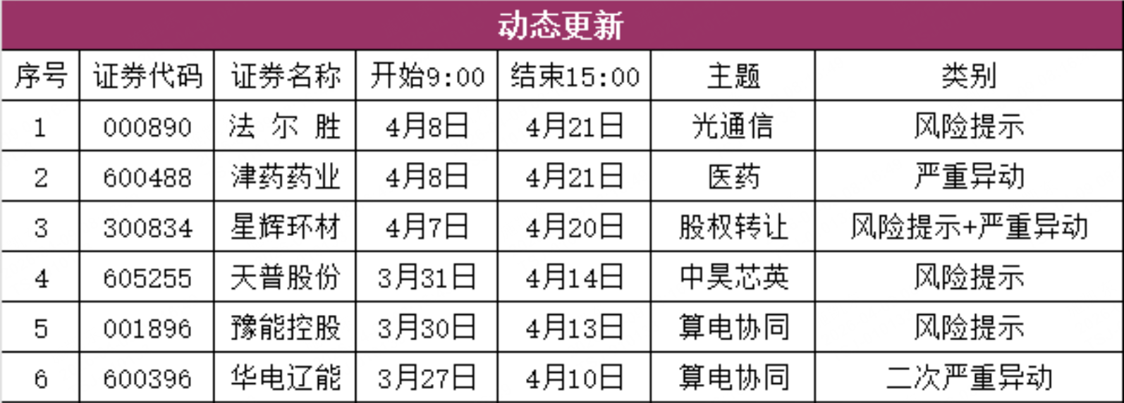 二、异动监管(动态更新)