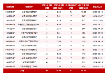 华夏基金旗下公募REITs分红情况