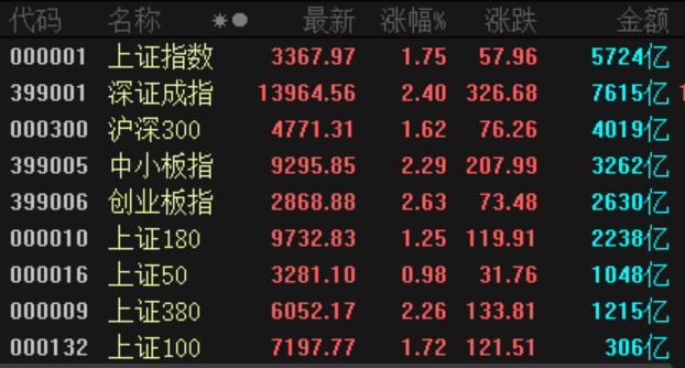 周一(8月3日),A股高开高走,市场呈现普涨格局。截至收盘,上证指数涨1.75%,深证成指涨2.4%,创业板指涨2.63%;科创板表现尤为突出,科创50指数大涨逾7%。市场交投情绪升温,两市成交额超1.3万亿元,已连续4日超过万亿级别。