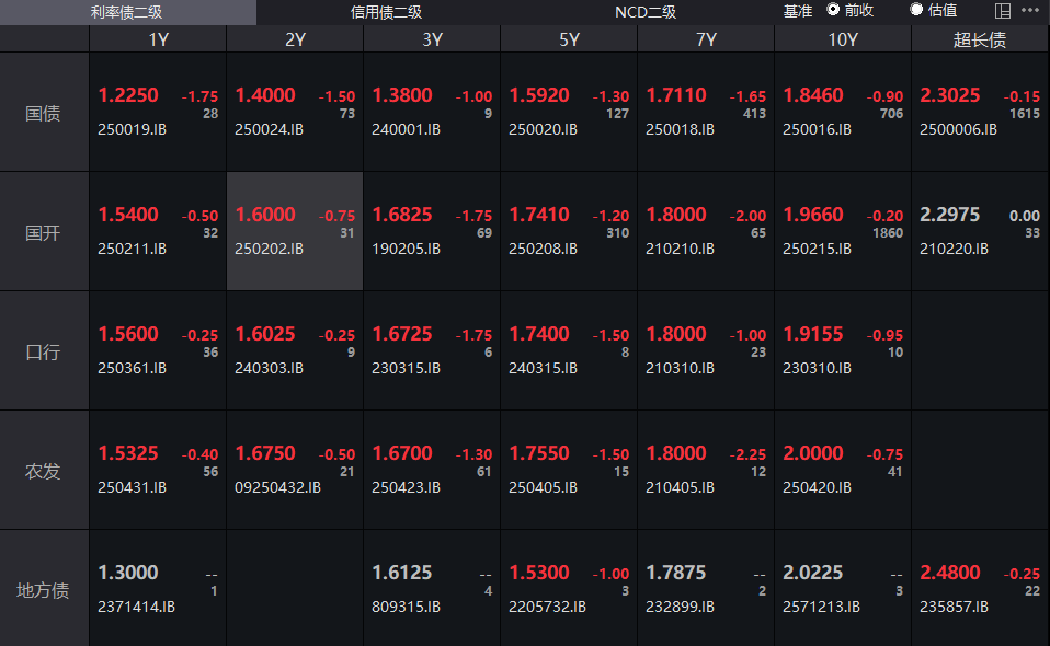 二级存单方面,6M国股成交在1.6000%附近(较前一日下行0.3BP),1Y国股成交在1.6250%的位置(较前一日下行0.47BP)。