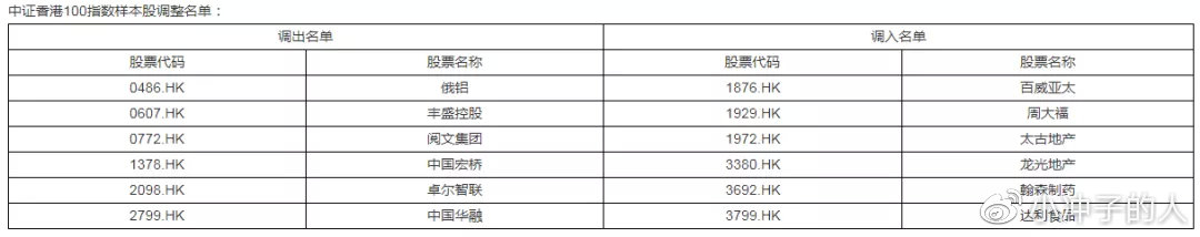 中证香港100指数更换6只股票,周大福、达利食品等进入指数,中国宏桥、卓尔智联等被调出指数。