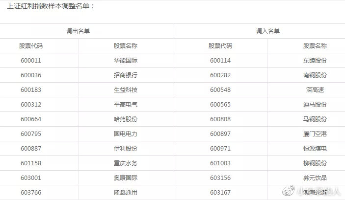 上证红利指数更换10只股票,马钢股份、深高速等进入指数,华能国际、平高电气等被调出指数。