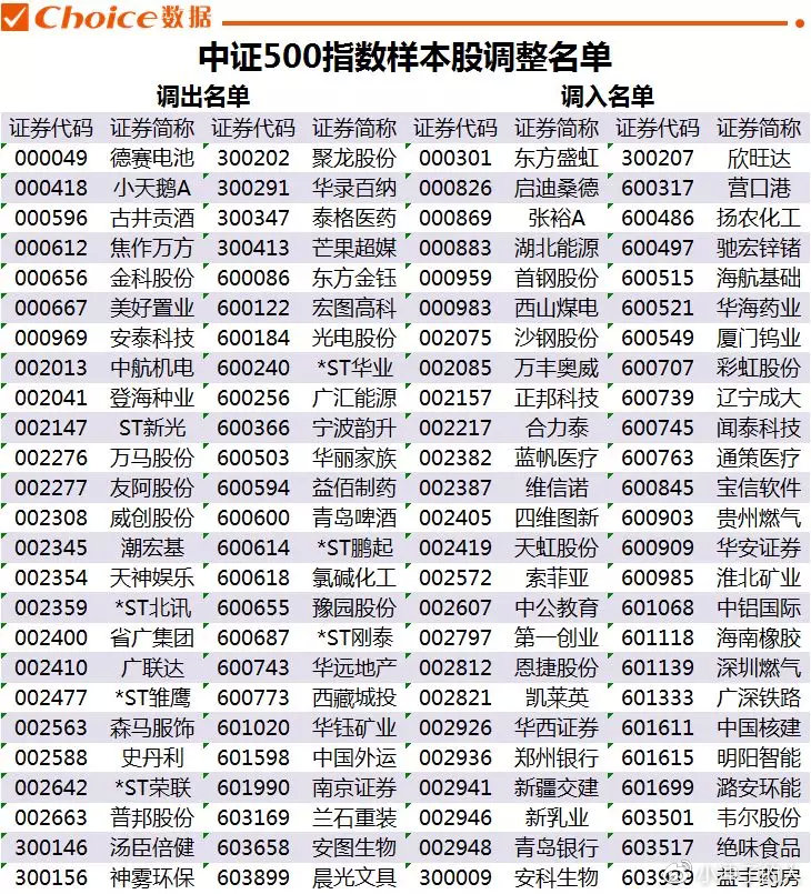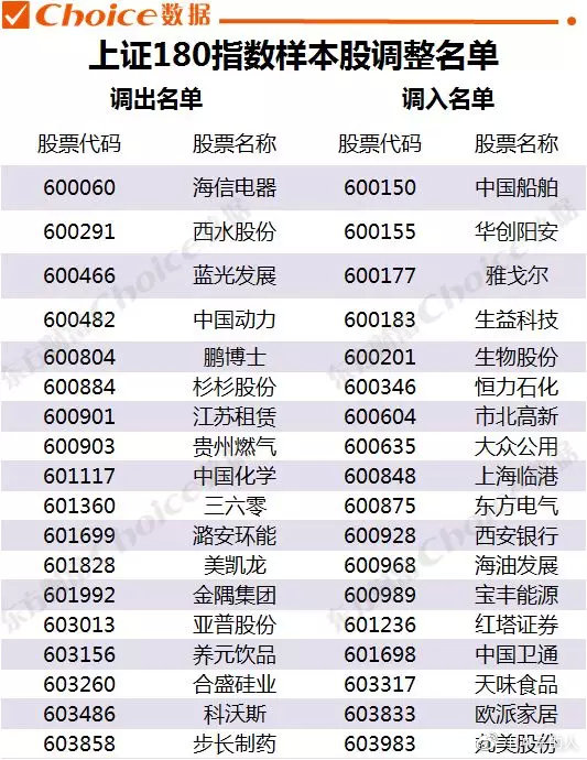 东方财富Choice数据显示,当前跟踪上证50、沪深300、中证500、上证180等核心指数的被动指数基金规模合计超过4000亿,这就意味着此次指数的样本股调整将影响超过4000多亿资金的配置。