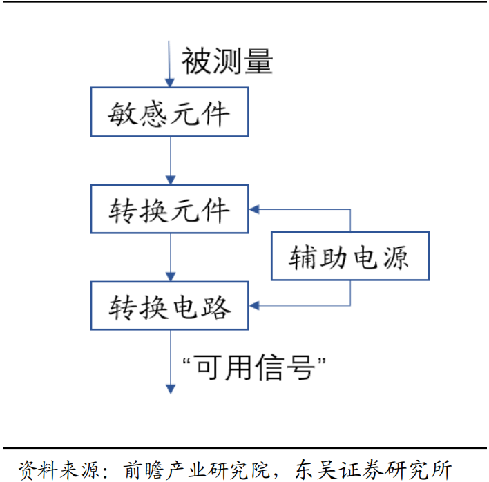传感器的工作原理是通过敏感元件及转换元件把特定的被测信号,按一定规律转换成某种“可用信号”并输出,以满足信息的传输、处理、记录、显示和控制等要求。