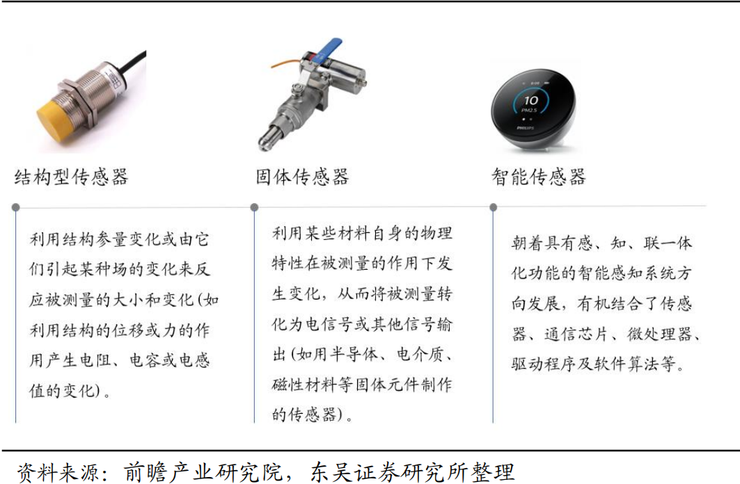 传感器被誉为“万物互联之眼”,可以精确地测量出压力、温度、浓度等,是数据采集的源头。传感器自诞生以来,大致经历了结构型、物性型和智能型三个发展阶段。