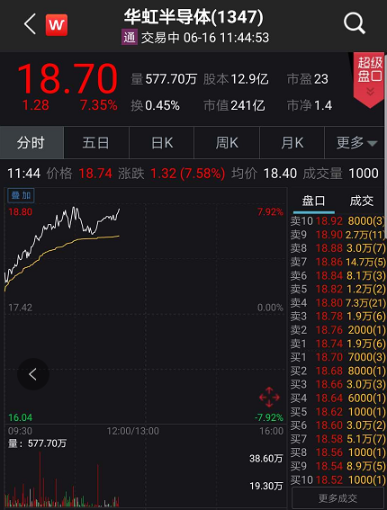 同时,另一只半导体龙头股华虹半导体也大涨超7%以上。