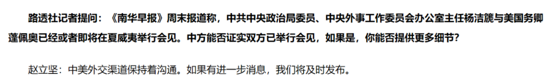 赵立坚表示,中美外交渠道保持着沟通。如果有进一步消息,我们将及时发布。