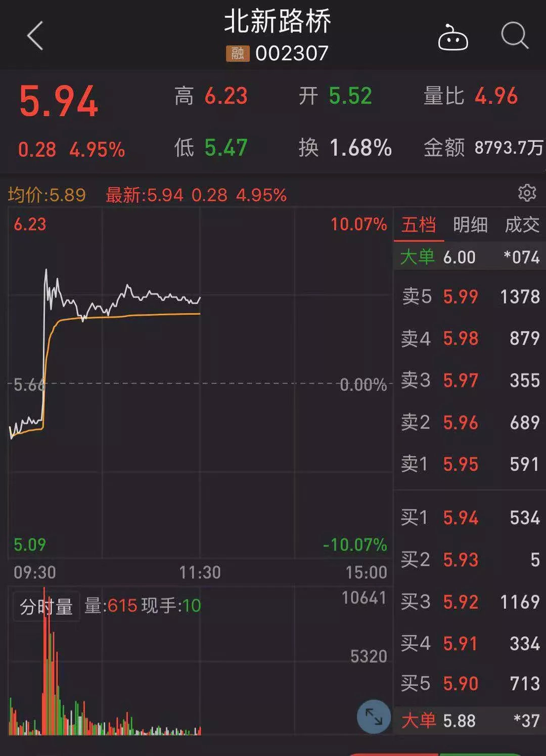 发生了什么?上午9时49分,正当上证指数低开后逐步回升之际,北新路桥突现直线暴力拉升,3分钟内从下跌约2%迅速翻红至触及涨停。