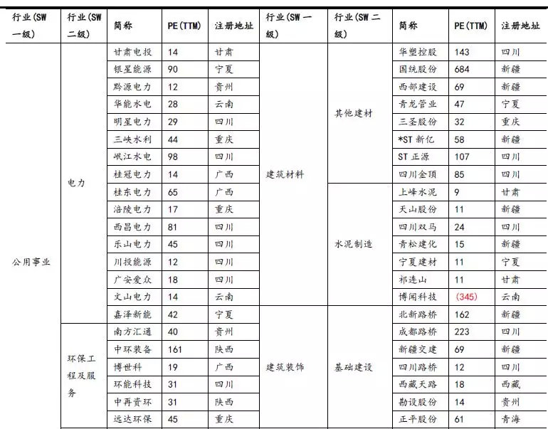 西部十二省基建标的梳理
