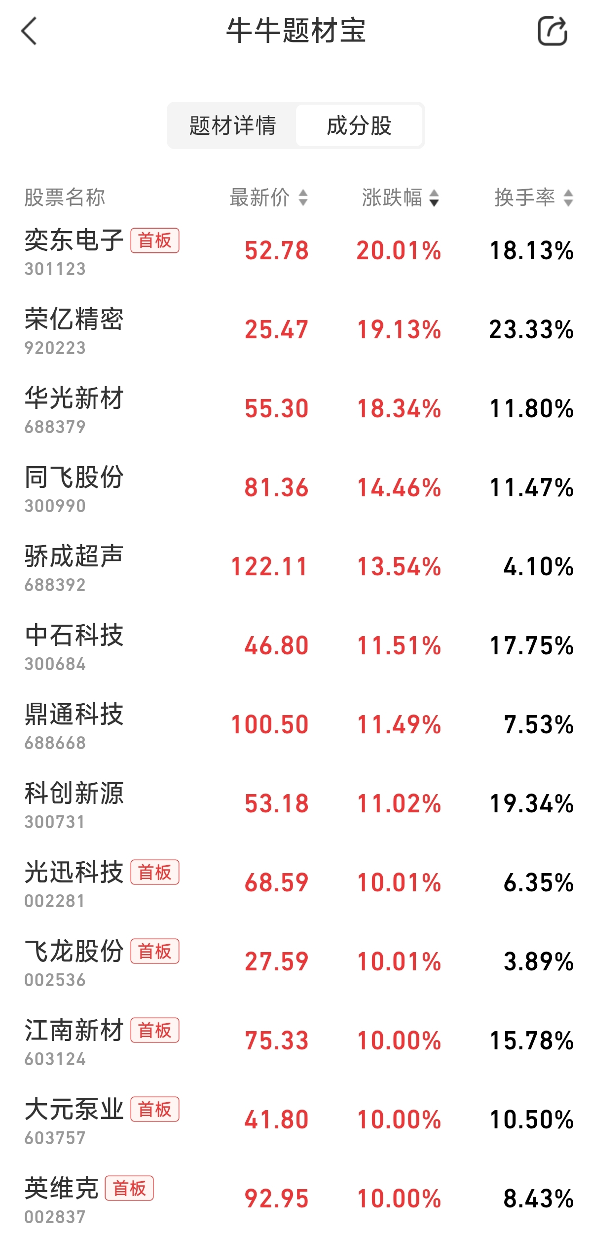 反弹行情,热点轮动快,一定要随时关注市场主线变化。如果投资人朋友没时间盯盘查资料,可以使用这个市场实时主线题材挖掘工具“题材宝”(点击解锁),会告诉你当前市场上的投资主线核心逻辑、领涨股、成分股资金流向信息。新朋友首次购买,还可以68元立减50,首月仅需18元,点击查看详情>>