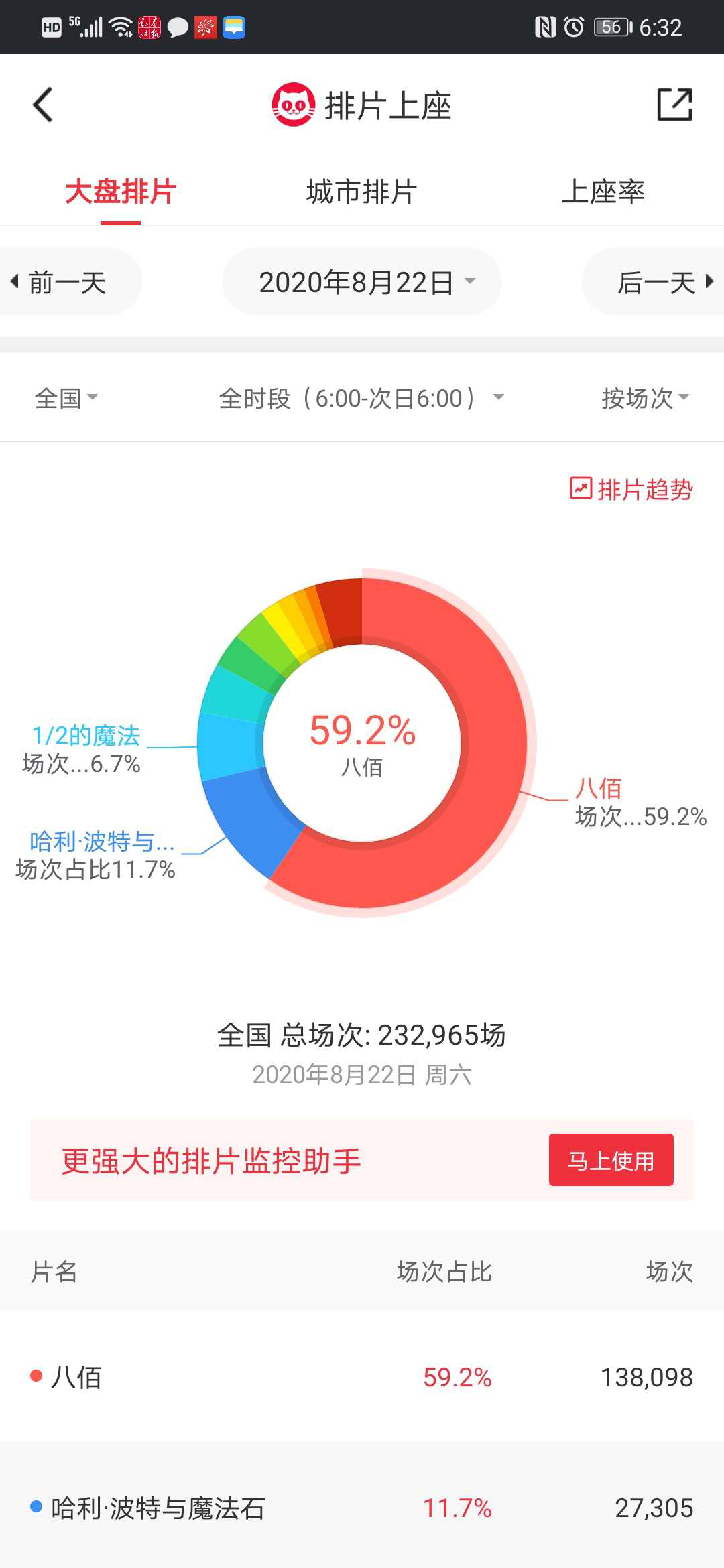 拍片方面,各大院线也似乎“独宠”《八佰》,排片占比接近60%,远高于第二名票房的《哈利波特与魔法石》。