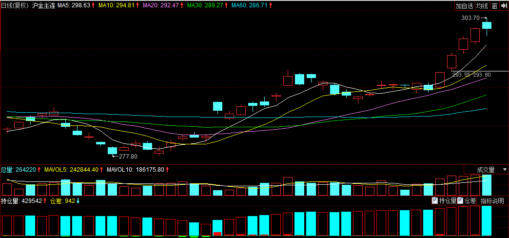 时隔六年,上期所的黄金期货主力合约上终于再次出现了3打头的价格。
