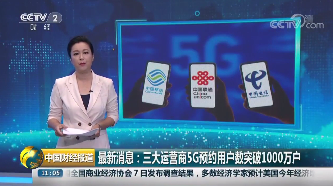 据央视财经报道,记者从三大运营商5G预约通道了解到,截至今天9点30分左右,中国移动、中国联通、中国电信的5G预约用户数分别达到592.26万户、200.33万户、207.84万户,合计超过1000万户。