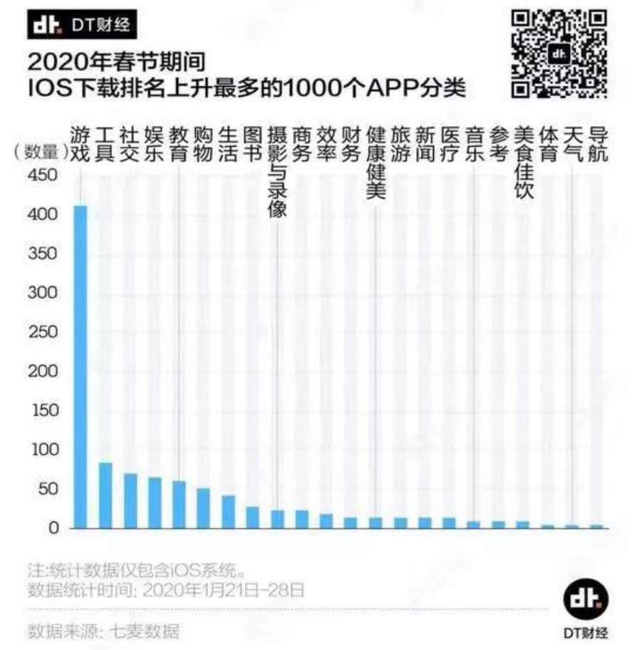 据DT财经统计,2020年1月21-28日,iOS下载排名上升最多的app分类当属游戏。