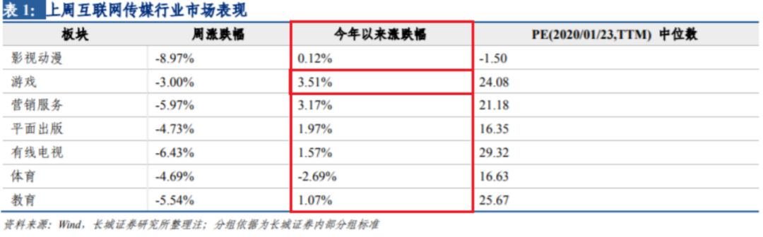 根据长城证券研究所整理数据,在互联网传媒行业的细分板块中,今年以来游戏板块表现最好,涨幅3.51%,其次是营销服务、平面出版、有线电视、教育和影视动漫。