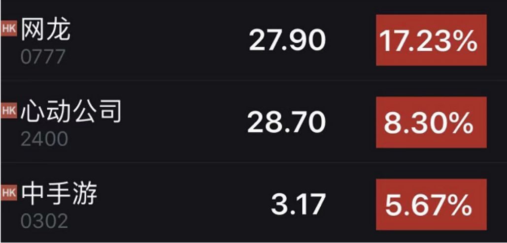 港股方面,截至2月7日下午3点,网龙(0777.HK)、中手游(0302.HK)和心动公司(2400.HK)表现亮眼,其中网龙本周已累计上涨超50%;心动公司作为上市不久的次新股,较11.1港元每股的招股价已累计上涨超150%,在表现不佳的港股中逆市走强。