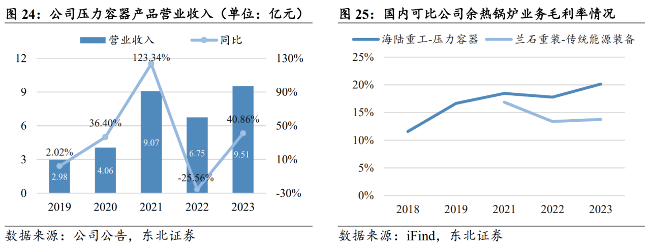 余热锅炉及压力容器业务产销两旺,有望受益下游高景气。公司余热锅炉业务主要服务钢铁、石化及有色冶炼等多行业客户,压力容器业务则深耕石化与煤化工行业。公司多年投入锅炉及压容业务,设计制造能力在国内处于领先地位,盈利能力长期改善、居于行业前列。近年国内石化行业资本开支维持高位,众多项目陆续开工,对余热锅炉和压力容器等大型特种设备需求旺盛,有望推动公司业绩呈现新一轮增长。同时,公司余热锅炉业务还将长期受益于国内大规模工业设备更新及循环经济发展带来的有色冶金行业设备需求上涨;国家能源安全战略推动煤化工行业快速发展、景气度上升,将持续利好公司的压力容器业务