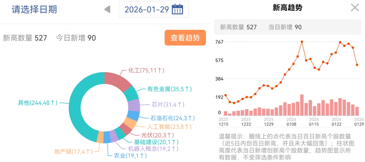 从百日新高去看,板块新高数量前4:化工>有色金属>芯片>石油石化