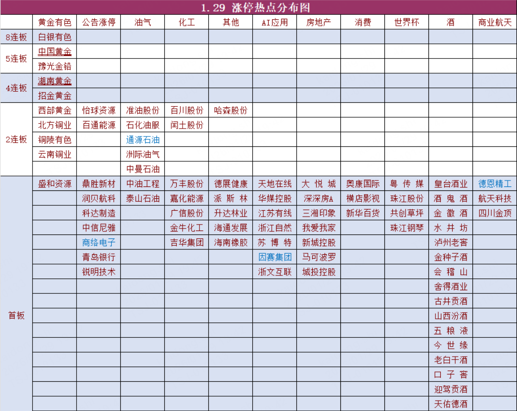 点评:昨天白天是黄金白银概念个股盘中巨震,尾盘收V,后面资金选了位置相对比较低的铜跟油气个股,尾盘又拉了化工,目前黄金白银个股蛮多进入异动监管了,而且晚上又轮到了黄金白银期货巨震了,杀完空头杀多头然后再杀空头,目前白银黄金期货又在晃悠悠的冲击新高了,这个方向今天参与难度比较大,如果继续反核逼空会面对周末监管跟期货涨跌的双重不确定性,可以要继续的话可以看下相对低位的化工油气,甚至农产品这种。