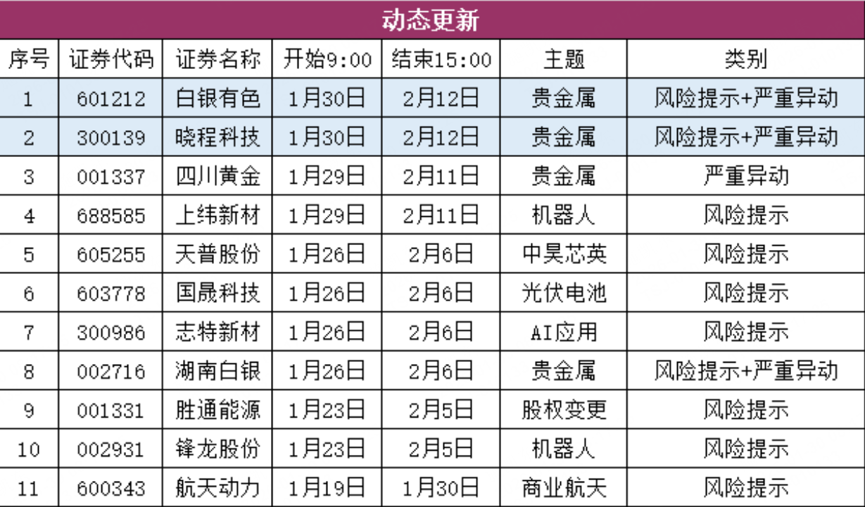 二、异动监管(动态更新)