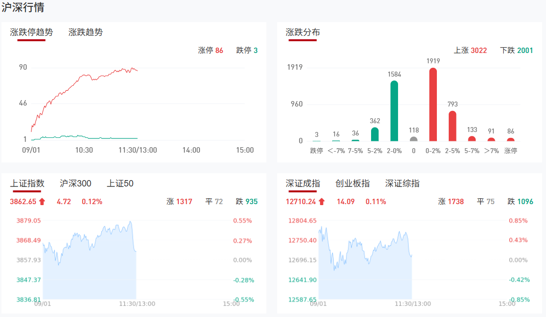 午评:创业板指冲高回落涨0.55% 黄金概念股集体爆发