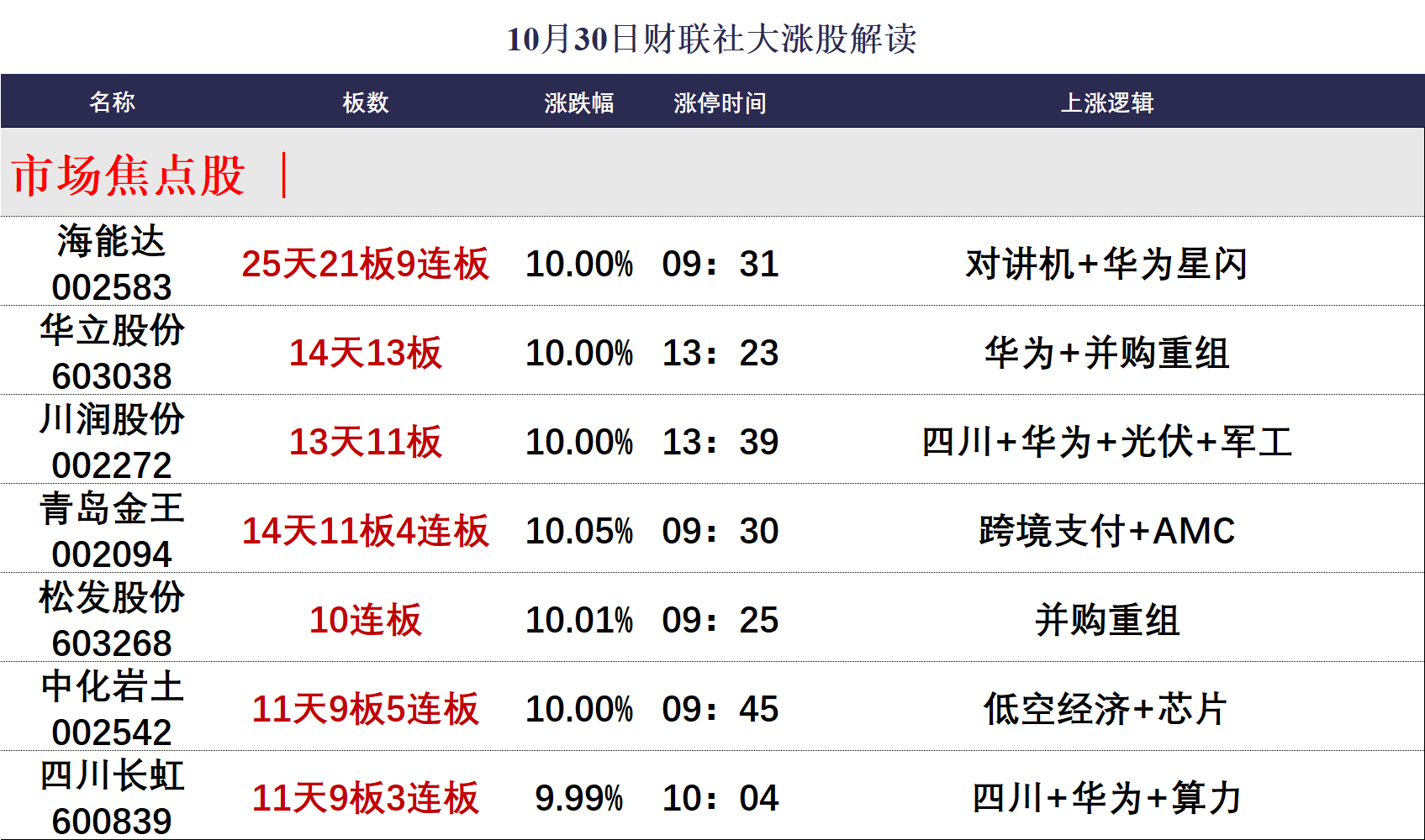 1、记者从供应链相关人士处获悉,11月部分华为Mate 70零部件的计划投产数相较Mate60同期增加约50%。消费电子产业链持续站上风口,欧菲光、华映科技、福日电子实现连板晋级,进而带动面板股星星科技、TCL科技涨停。智谱AI于日前正式上线AutoGLM新功能,使得智谱AI概念股持续站上风口的同时,AI手机/PC概念盘中也展开不俗涨势。消费电子板块持续升温的同时,鸿蒙概念今日也展开向上加速,润和软件、常山北明等前排大票也纷纷上板。随着鸿蒙等科技线高位方向的维持强势,近期国产算力为首的信创概念也持续转强,高位股城地香江反包涨停,中国长城晋级2连板,进而带动高新发展、中贝通信、世纪华通等去年热炒的算力租赁概念股也展开补涨。国务院国资委主任张玉卓发文称,下一步将适度超前建设一批智能算力中心。作为新基建的重要部分,算力硬件端仍有望持续受益算力方面开支的加码。