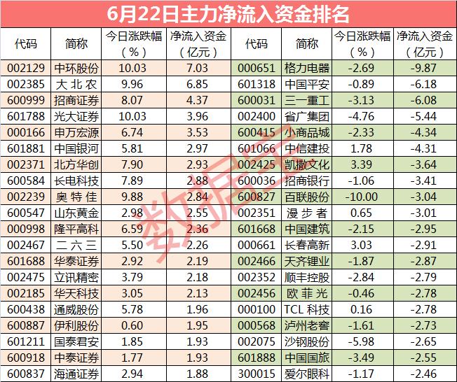 沪指6月22日下跌0.08%,主力资金全天净流出184.22亿元,已连续4个交易日资金呈净流出状态。其中,中小板主力资金净流出51.28亿元,创业板主力资金净流出40.93亿元,沪深300成份股主力资金净流出46.74亿元。