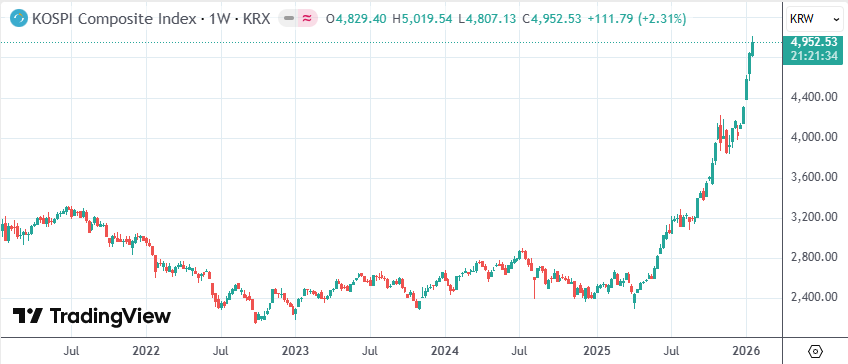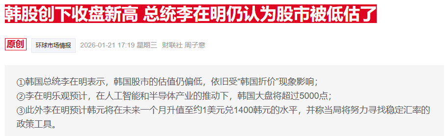 韩国综合指数创新高 李在明上任不到一年就实现5000点目标