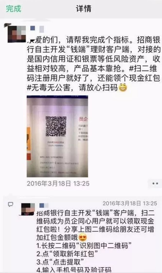 二、 招商银行2016年5月后,面向企业客户的员工组织“员企同心”营销活动,推荐下载钱端APP等属违规推介行为。
